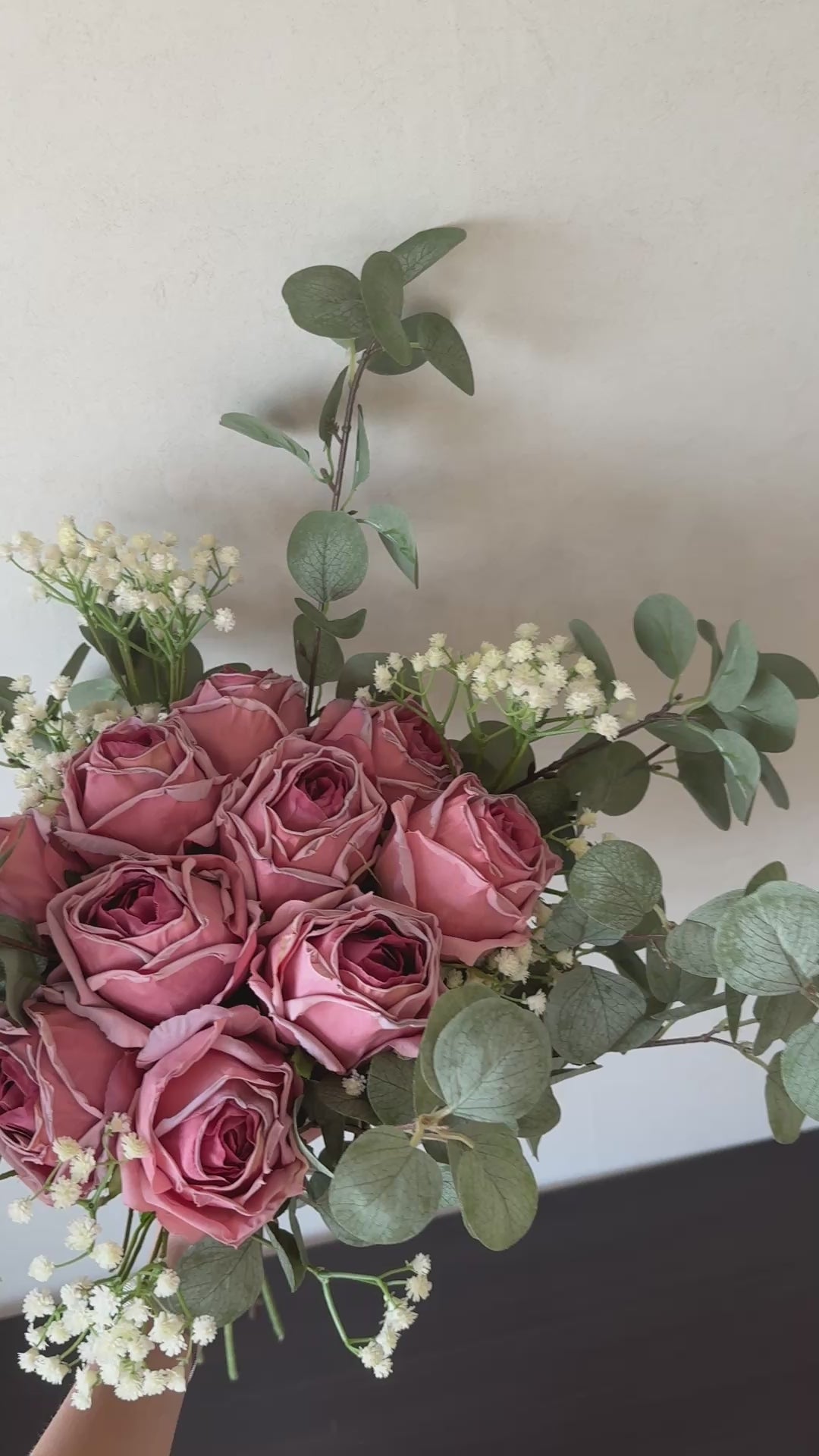 Bukett Allegro är en Rosbukett med 10 rosor i Rosa ton. Buketten har totalt har 16 stjälkar och innehåller Ros och Eukalyptus och brudslöja